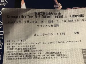 先月、マリンメッセ福岡に小田和正さんの追加公演を観に行ってきました。小田さんのライブではいつも、ステージ上の後ろでみられるオンステージ券の抽選があります。今回初めて当選しました。15人づつ2列で計30名の当選です。僕と家内で1列の3番 4番でした。