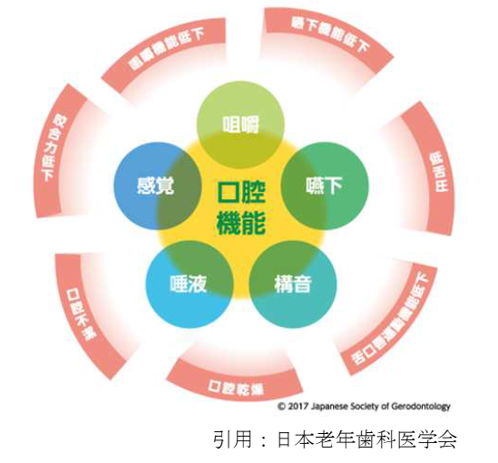 歯をできるだけ残したり、入れ歯を作ったりしてかめるようにすることはもちろん大切ですが、歯が担うのは口腔機能(お口周りの機能)の一部なので、口腔機能が低下していれば食べたり飲んだりしにくくなる場合があります。
